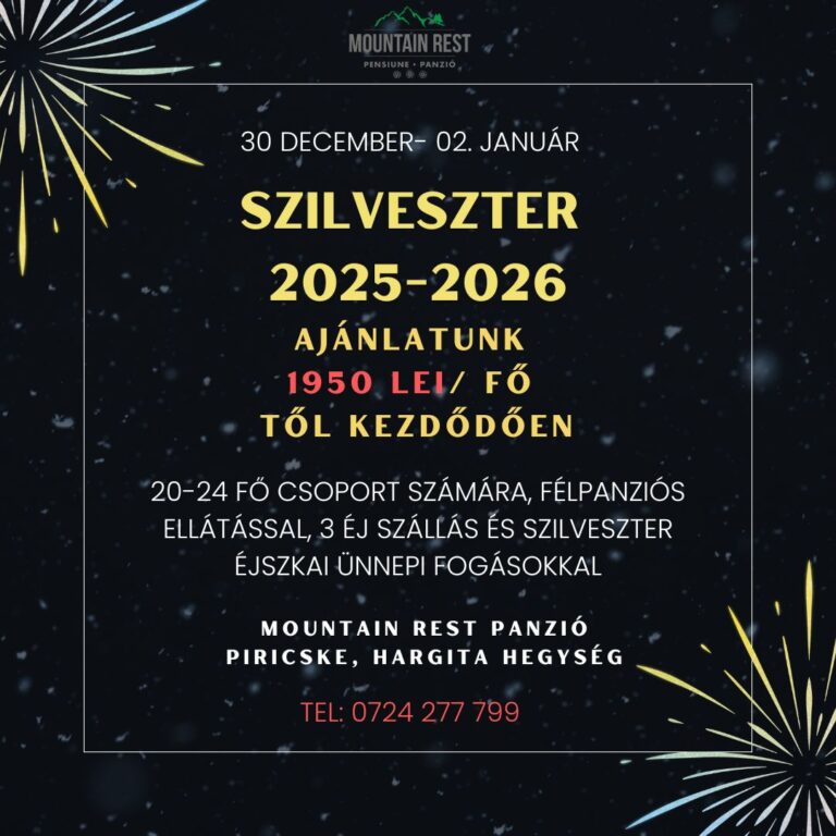 Köszöntse az Újévet egy hangulatos hegyvidéki panzióban, ahol a finom ételek, a jókedv és a kikapcsolódás garantált!